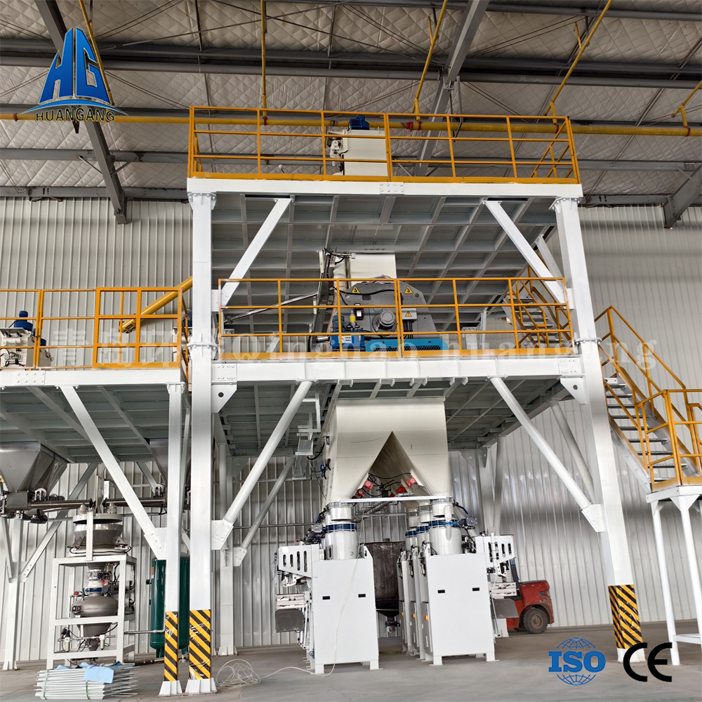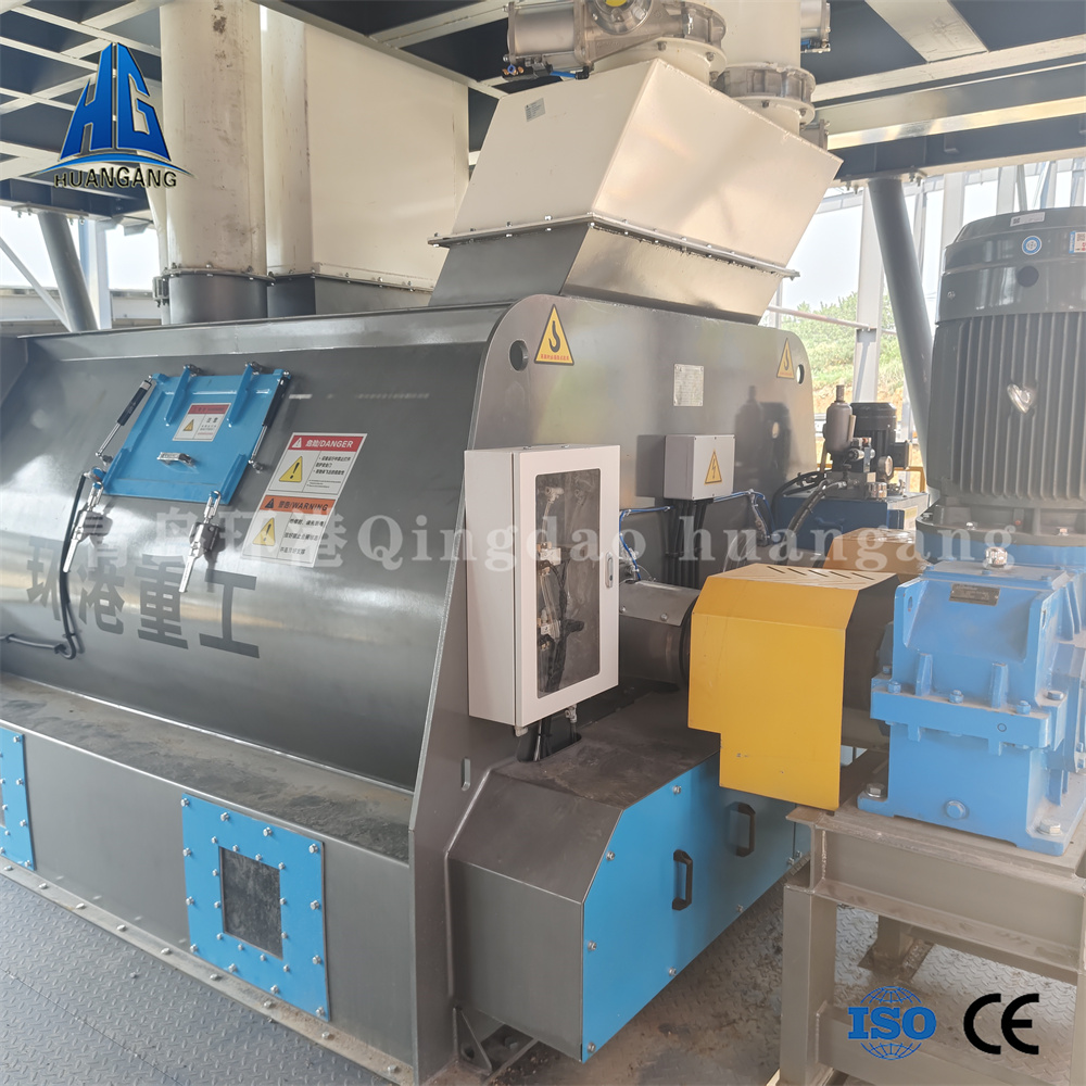 雙軸無重力混合機最大容積可達4000-8000L,雙軸轉(zhuǎn)速每分鐘55轉(zhuǎn),相比于單軸混合機攪拌容積比較大,適合更大產(chǎn)量的散裝物料生產(chǎn),能在180秒左右把計量好的砂子,水泥,石膏、粉煤灰、重鈣、灰鈣,外加劑等原材料充分翻合均勻,形成達到規(guī)定強度的成品物料,還使用了獨特的液壓開門結(jié)構(gòu),能使物料在10秒內(nèi)卸料完成,出料殘余少,并且我們的混合機出料口設(shè)有分料器,可根據(jù)需要控制成品物料是送往包裝機進行袋裝或經(jīng)過干粉送料螺旋送到散裝頭進行散裝。